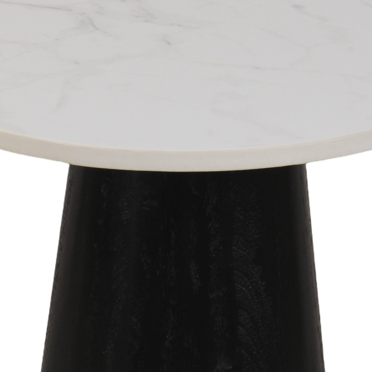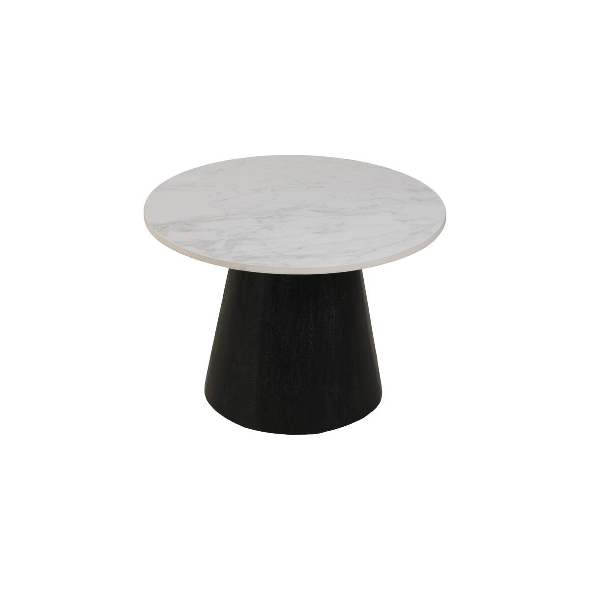 Close up view of fabriano composite marble nesting coffee table with brushed black base