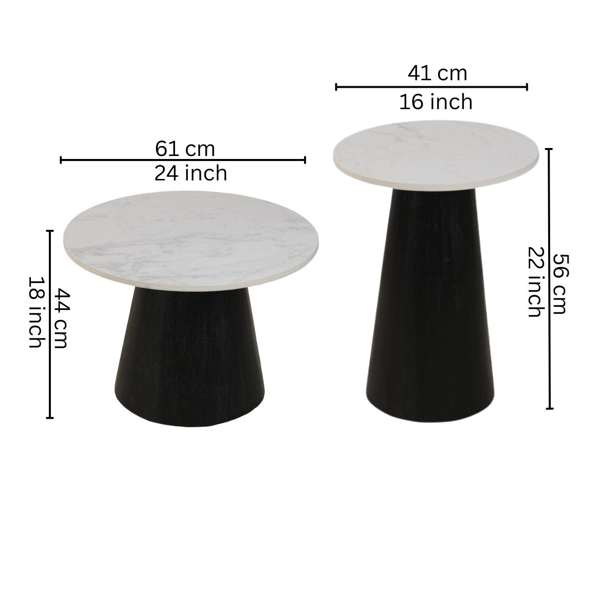 Dimension view of fabriano composite marble nesting coffee table with brushed black base