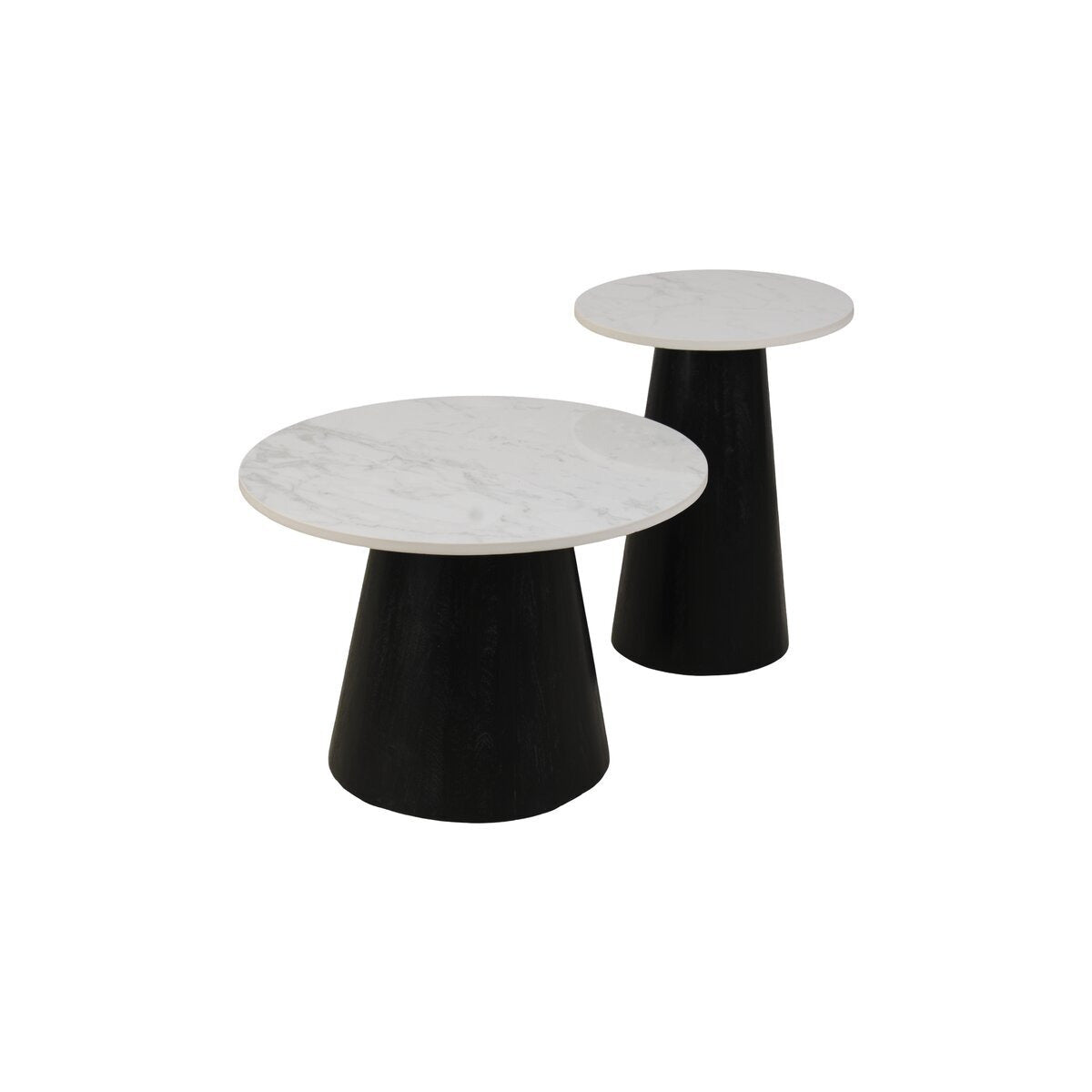 Front view of fabriano composite marble nesting coffee table with brushed black base