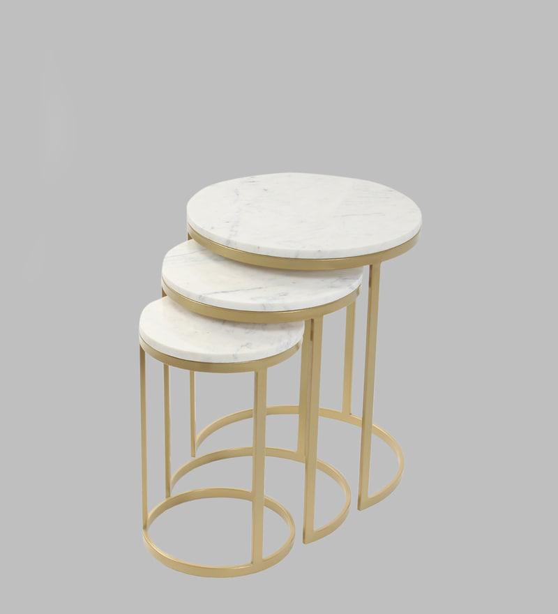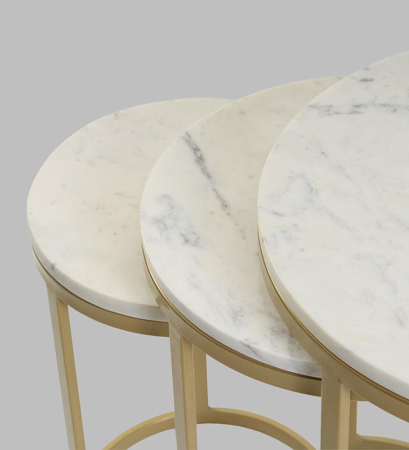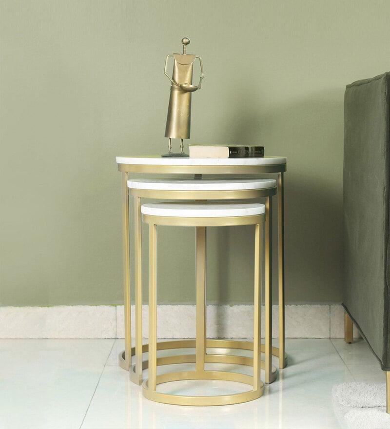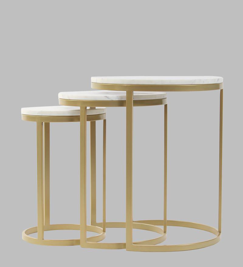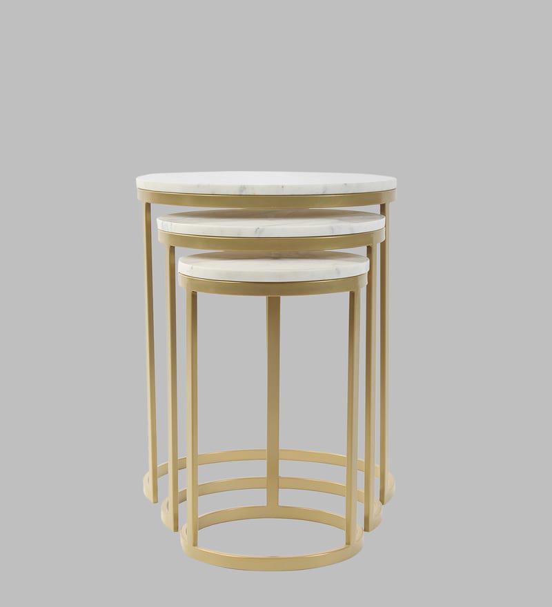 Elevate your living room with the Nelson Nesting Marble Side Table Set of 3. Each table features stunning wonder white marble paired with a gleaming gold finish. These nesting tables prove that smart design and gorgeous aesthetics can absolutely coexist!