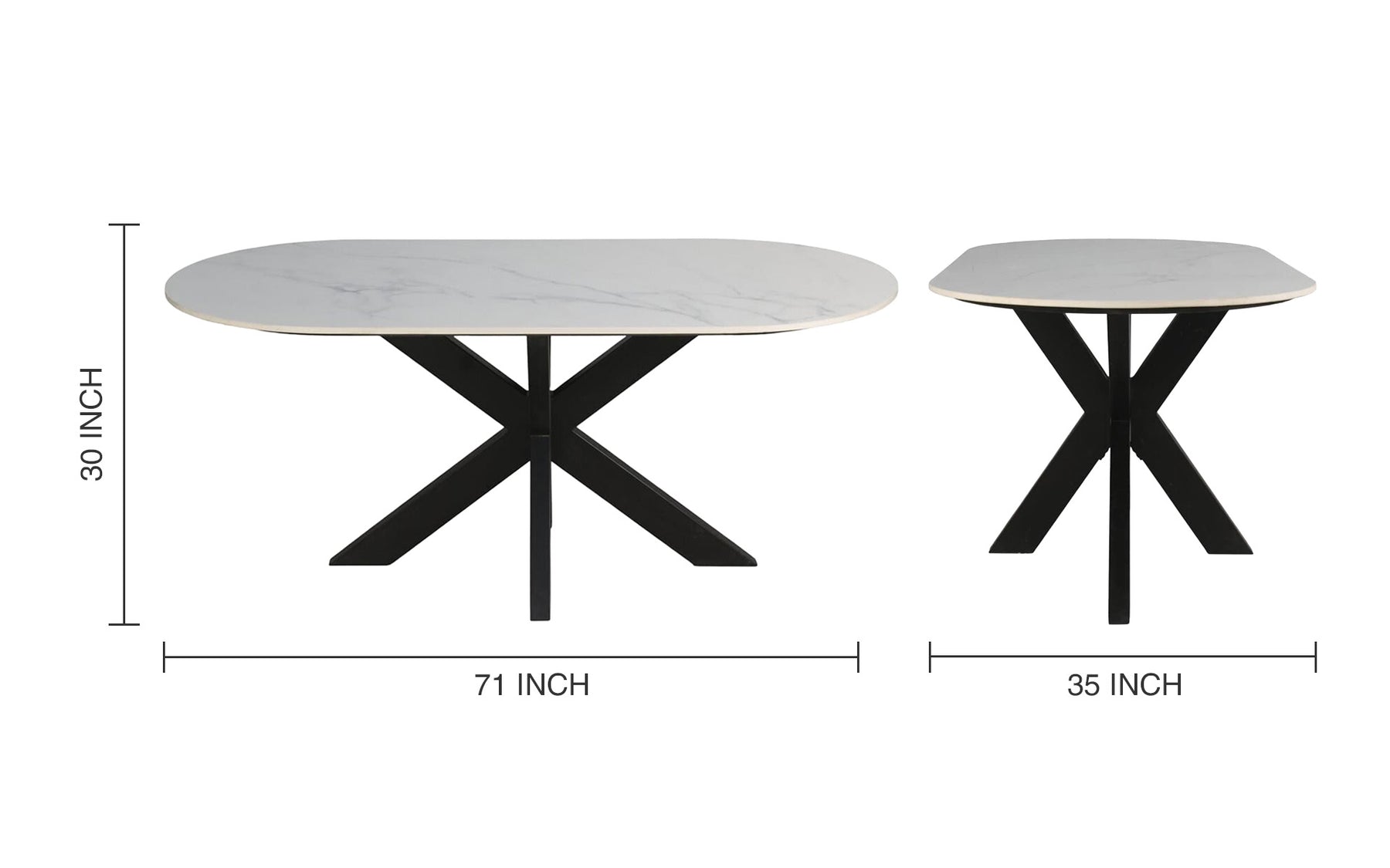 Dining: L 71 x B 35 x H 30 Inches